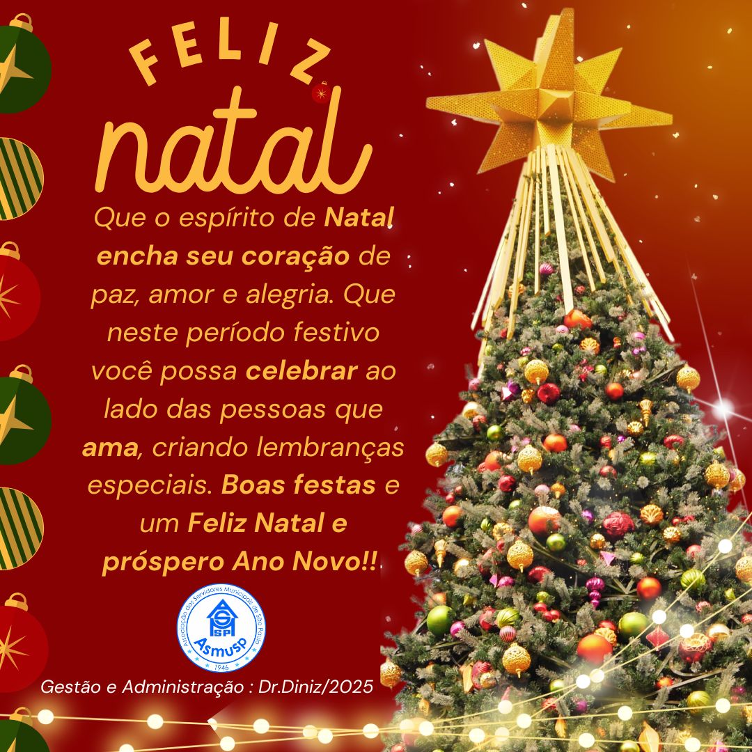 COMUNICADO AOS ASSOCIADOS À Asmusp deseja a todos os Associados, Boas Festas e um Feliz Natal e um Próspero Ano Novo!!! Gestão e Administração: Dr.Diniz/2025.